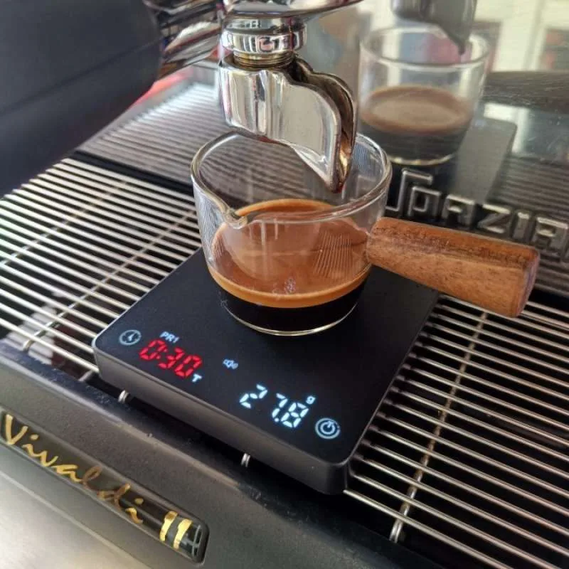 مینی ترازوی دیجیتال لمسی مدل KC200 محصولی با صفحه لمسی برای استفاده روش دم آوری قهوه بصورت قطره ای و پور اوور می باشد. ترازو به شما امکان اندازه گیری و نظارت دقیق در فرایند تهیه قهوه بصورت قطره ای همچنین عصاره گیری از طریق دستگاه های اسپرسوساز را می دهد. زمان سنجس دقیق در کنار ترازوی دقیق می باشد که از ۰٫۱ گرم تا ۲ کیلوگرم را به شما نشان می دهد.دارای صفحه نمایش لمسی با سنسورهای . پیام HELLO هنگام روشن کردن ترازو نمایش داده خواهد شد